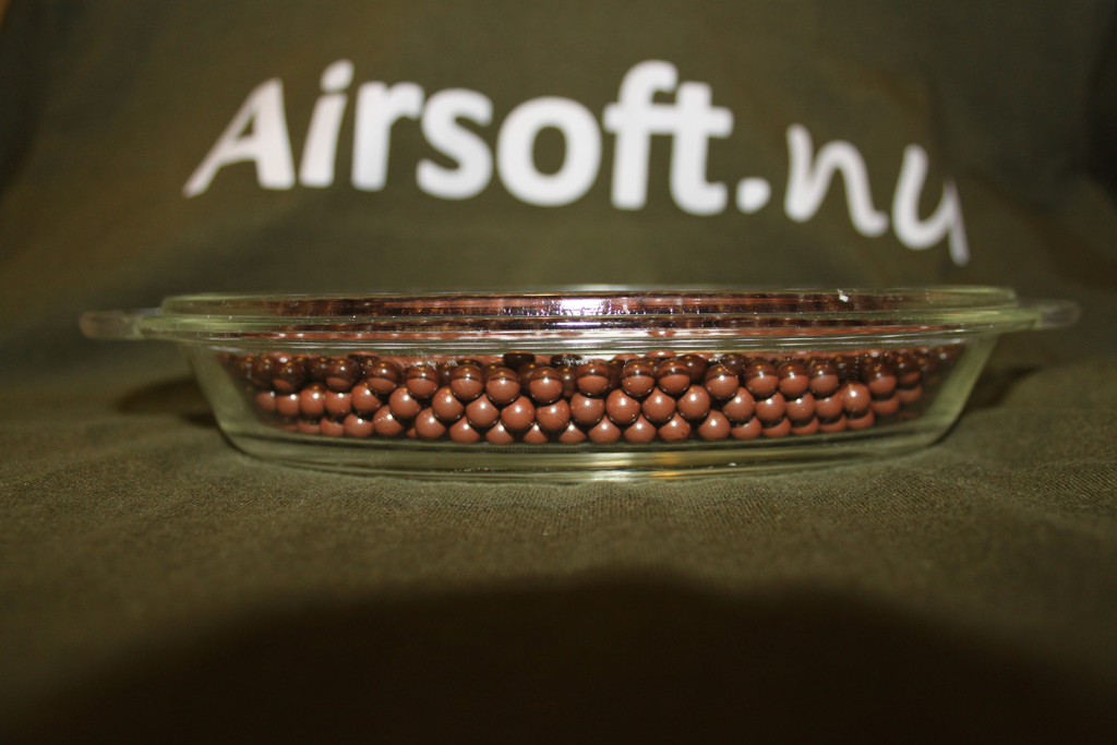 Bruna och vita airsoftkulor. Bruna och vita airsoftkulor. Bilden visar den ena långsidan.
