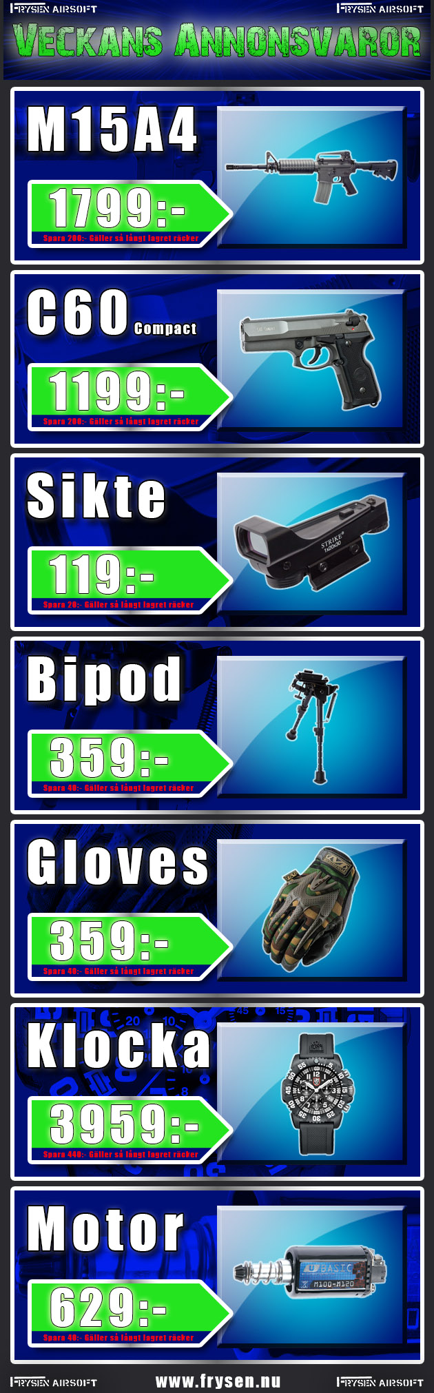 Veckans Annonsvaror från Frysen Airsoft, ta del av våra fina erbjudanden via denna länk: Veckans Annonsvaror