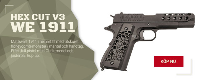 Nu har vi fått in en mycket effektfull 1911 Hex Cut V3 i helmetall från WE.