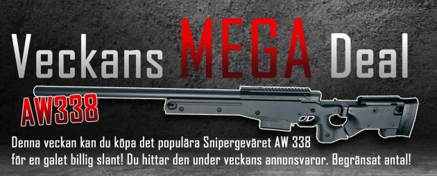 Veckans Mega Deal! Denna veckan kan du köpa det populära Snipergeväret AW 338 för en galet billig slant! Du hittar den under veckans annonsvaror. Begränsat antal!