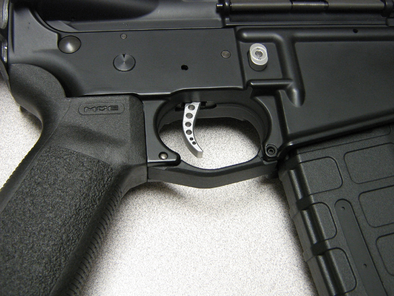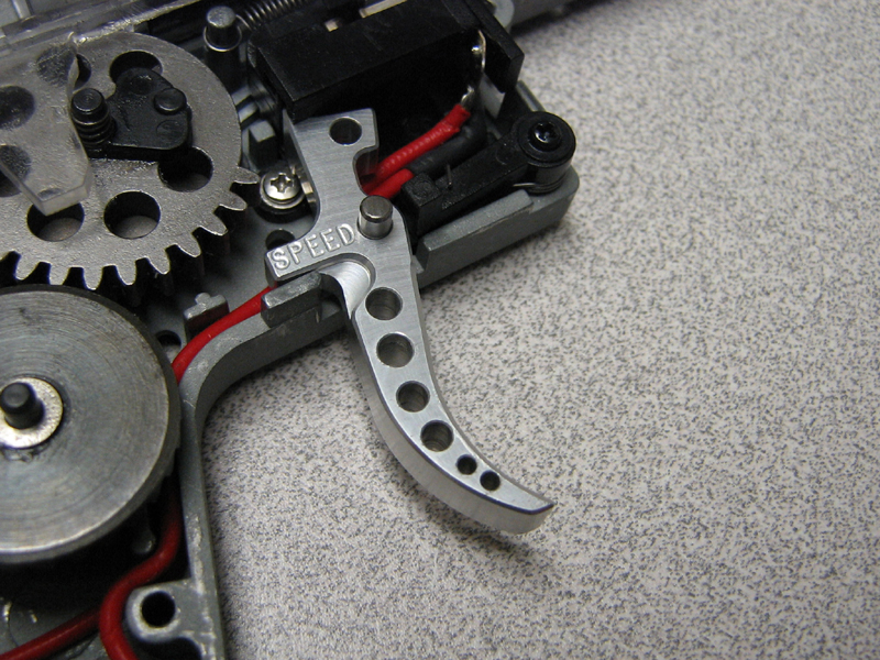 Speed Airsoft som för inte länge sedan gav ut verktyg för M4 AEG-gevär släpper nu sin innovativa M4-avtryckare. Om man tittar riktigt noga på den ser man att på baksidan finns en stoppskruv, som man kan skruva igenom för att få ett kortare avtryck genom att avtryckaren hamnar längre bak som då kräver mindre rörelse för ett avlossat skott.