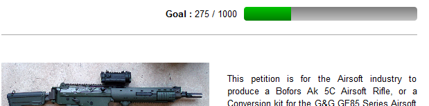 It has been some months since you started the petition to get G&G Armament to build an Airsoft weapon that looks like the Swedish AK5, how is it going? |