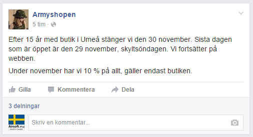 (Airsoft.nu har sen tidigare vetat om försäljningen och pratat med ordföranden men avvaktat skriva om det innan officiellt uttalande kommit från föreningen).