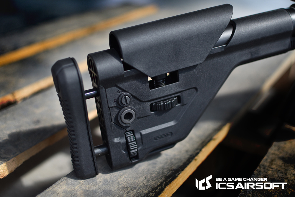 When it comes to sniper stock, it should provide the adjustable cheek piece and adjustable length. ICS UKSR offers 12 levels to be adjusted for the snipers. Additionally, UKSR has the large battery space that you can put 11.1V Lipo easily. Especially, you can remove the UKSR butt pad quickly and easily, the important thing for Airsoft players; Only with one coin, you can change the battery without any tool. Moreover, UKSR is compatible with M4 stock tubes from most of the brands in the market. ICS UKSR offers a fine-tuned and customized touch to every Airsoft player.Artikelnummer: MA-364