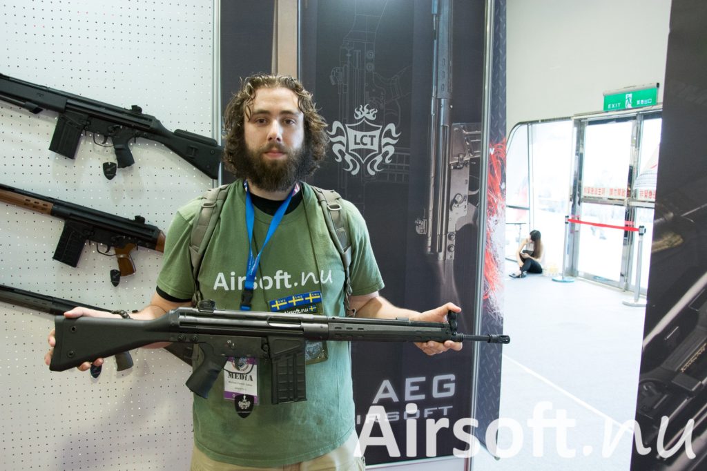 Vi träffade Allen från Kriss USA (Krytac) som var besökare av mässan tillsammans med japanska tillverkaren Laylax. De skulle sedan vidare till Krytacs fabrik i Taiwan för att kolla in tillverkningen av Krytac Kriss Vector AEG.