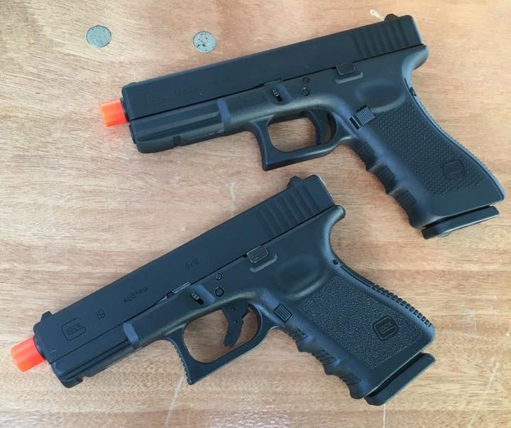 Bild från Jet DesertFox och visar de gasdrivna licensierade Glock-pistolerna som kommer lanseras framöver. Glock 17 och Glock 19.