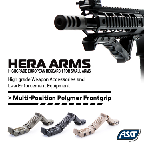 ActionSportGames (ASG) har skickat in information om att de kommer lansera främre handgreppet Multi-Position Polymer Front grip till airsoftmarknaden under licens från ursprungstillverkaren Hera Arms.