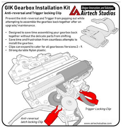 The product is a gearbox installation kit used to help any users save the frustration of putting the gearbox together after maintenance or upgrade in the gearbox. This could save a lot of hours and time to put it back together and is a great upsell product for any customer who buys any gearbox related upgrades for the rifles.
