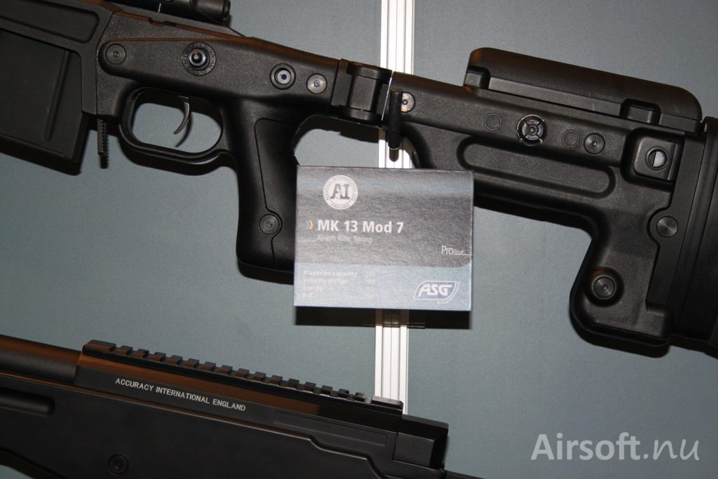 Mer (airsoftrelaterat) från ASG som visades upp i montern var EVO ATEK-delar (yttre uppgraderingsdelar till deras Scorpion EVO-serie) som sedan nyligen är lanserade och redan tillgängliga i flera butiker samt kommande Accuracy International-licensierade snipergevär-serien MK13.